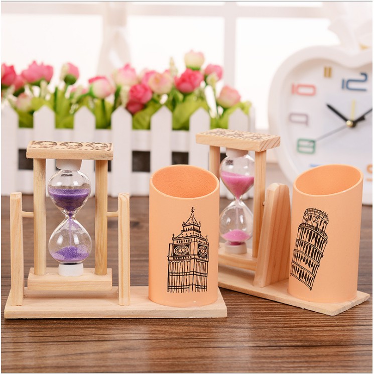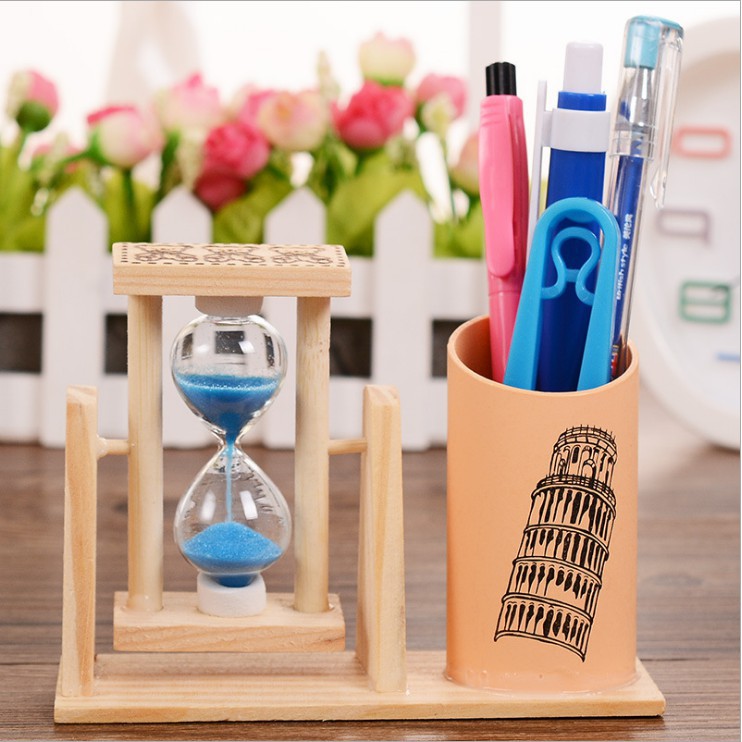 Tên sản phẩm : Đồng hồ cát kèm ống đựng bút GỖ dạng tròn độc đáo- giao mẫu ngẫu nhiên
