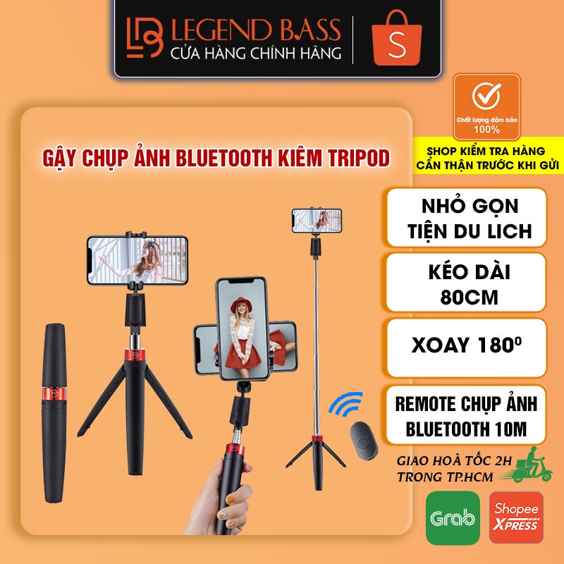 Giới thiệu [HOT] Gậy Selfie Bluetooth Chống Rung Cao Cấp | Tripod Điện Thoại Mini Có Chân Đỡ, Trục Xoay 360 Độ Legend