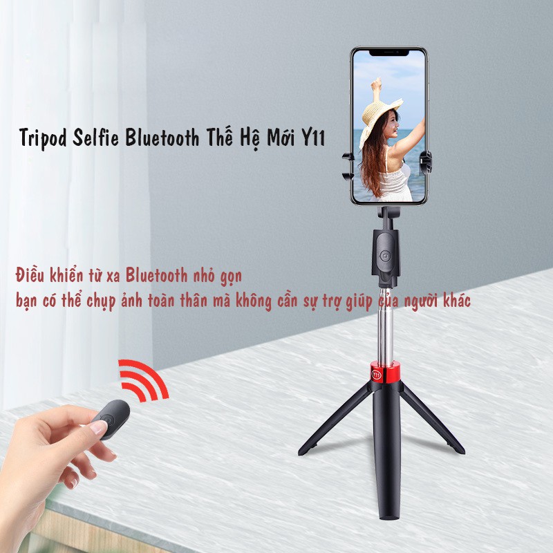 ✔️ Gậy tự sướng Selfie stick tripod Y11 là một sản phẩm “lai” giữa gậy tự sướng với chân chụp ảnh (tripod). Một sản phẩm gậy tự sướng cao cấp, được trang bị những tính năng hiện đại, giúp tối ưu hiệu quả sử dụng và đơn giản hóa việc chụp ảnh của người dùng.