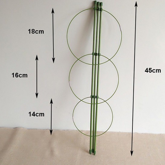 Kênh bán buôn Vật tư nông nghiệp Hạt Giống Mùa Xuan giới thiệu: Giá đỡ hoa hồng, hoa leo đa năng kích thước cao 45cm, đường kính vòng tròn 18cm gồm:- 3 chân đứng lỏi thép bọc nhưa cao cấp phi 7 cao 45 cm