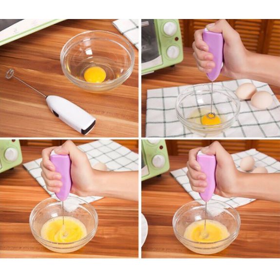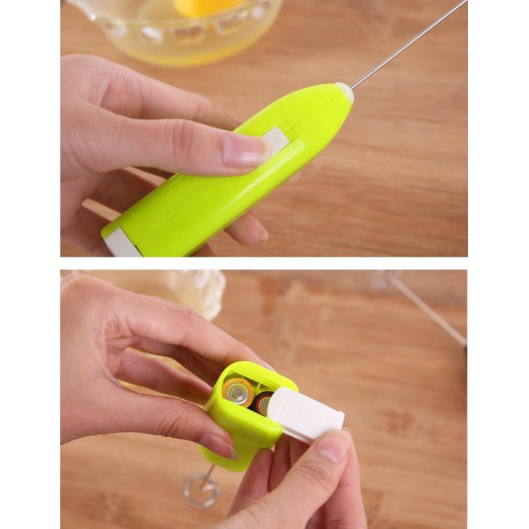 - Máy đánh trứng mini hoạt động dựa trên nguyên tắc đánh trứng bằng tay thông thường. Khi lắp pin vào và bấm công tắc, động cơ bên trong sẽ rung mạnh, làm xoay tròn que đánh trứng.