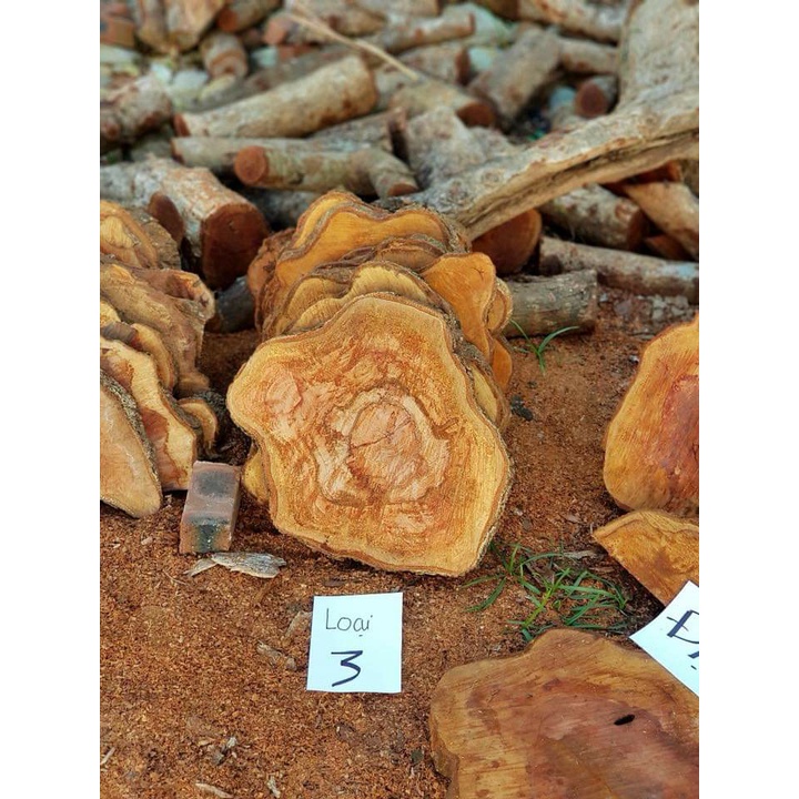 - Kích thước: Miếng gỗ cắt tự nhiên giữ lại cả phần vỏ nên có nhiều hình thù, đường kính dao động 16-20cm. Độ dày 3cm