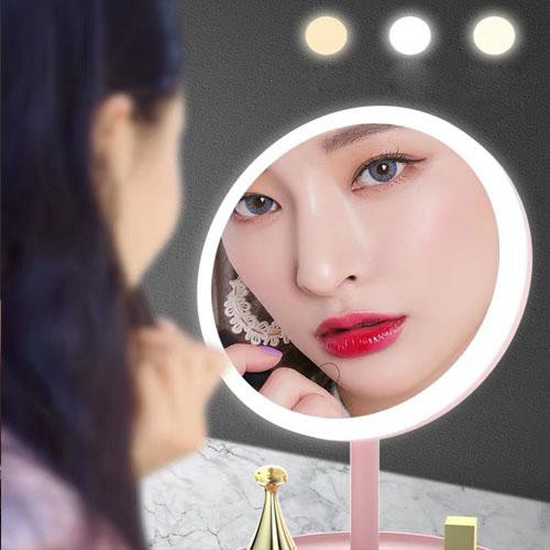 👉 Gương được tích hợp hệ thống đèn LED chiếu sáng quanh viền gương giúp bạn có thể trang điểm, makeup ngay cả trong điều kiện tối mà hình ảnh vẫn luôn được đảm bảo rõ nét.