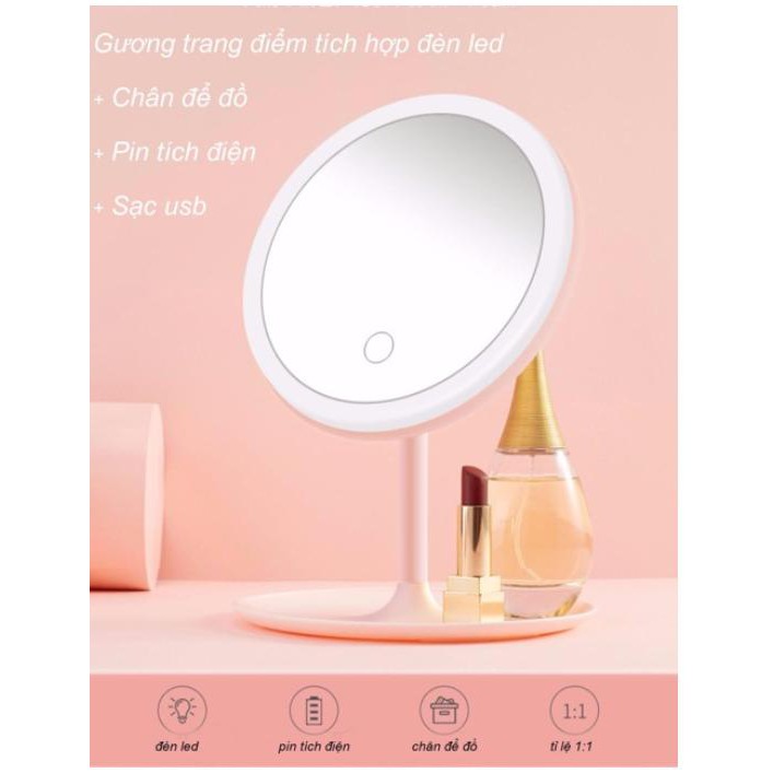 Gương trang điểm kèm đèn led pritech để bàn makeupi | Gương soi có đèn kèm sạc tiện dụngGưong để bàn co thể xoay điều chỉnh phát sáng có sạc tích điện