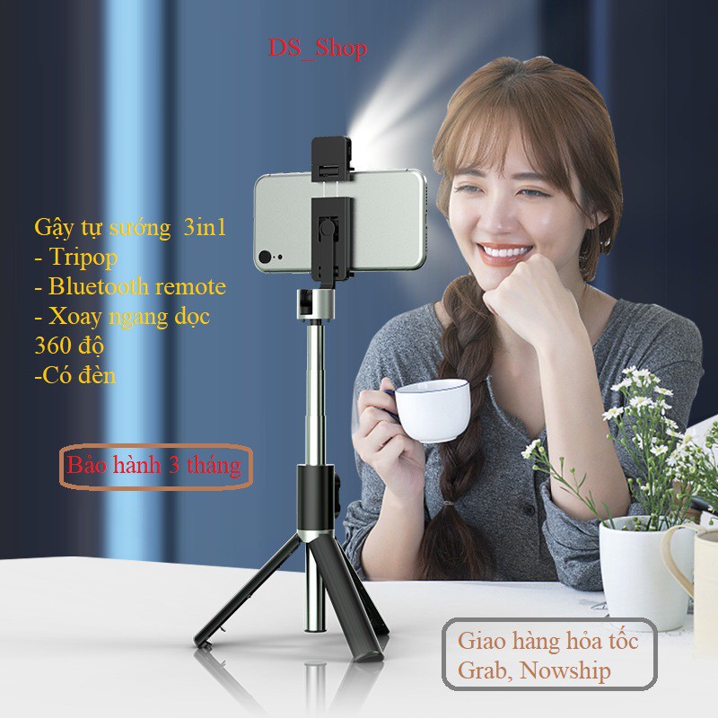 HOT- HÀNG HỊN Gậy tự sướng3 in 1 tích hợp Bluetooth selfie, giá đỡ điện thoại hỗ trợ livestream