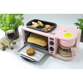 Sản phẩm là một chiếc máy tích hợp lò nướng, máy pha cà phê và bếp nướng.