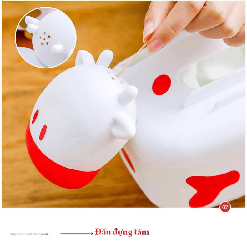 [HOT] Hộp Đựng Khăn Giấy Để Bàn Ăn Kiêm Lọ Tăm Xỉa Răng Đa Năng Hình Con Bò Sữa Đáng Yêu