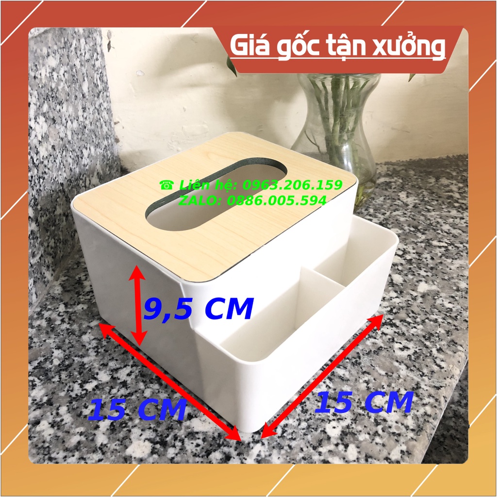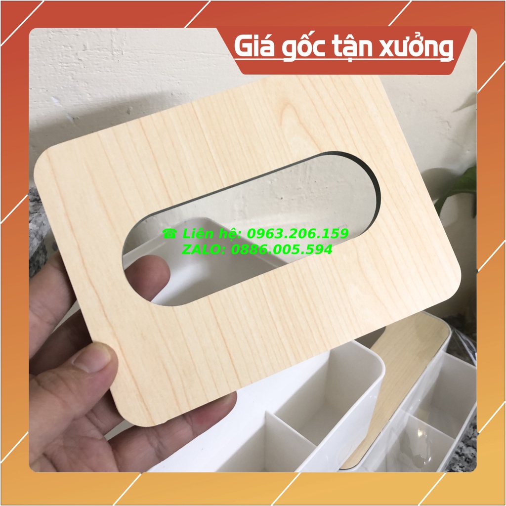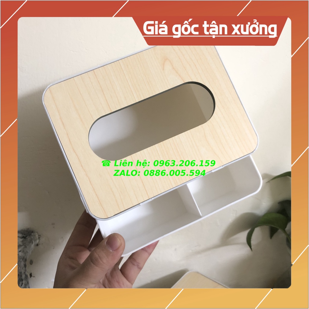 Nhà cửa & Đời sống > Sắp xếp nhà cửa > Hộp khăn giấy || [HOT] Hộp Nhựa Mặt Gỗ Ép Đựng Giấy Ăn Và 2 Ngăn Để ĐồCòn hàng