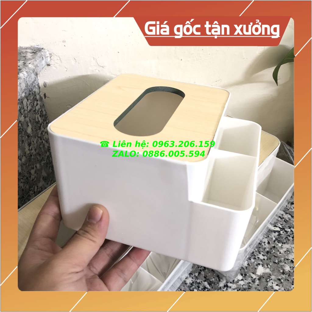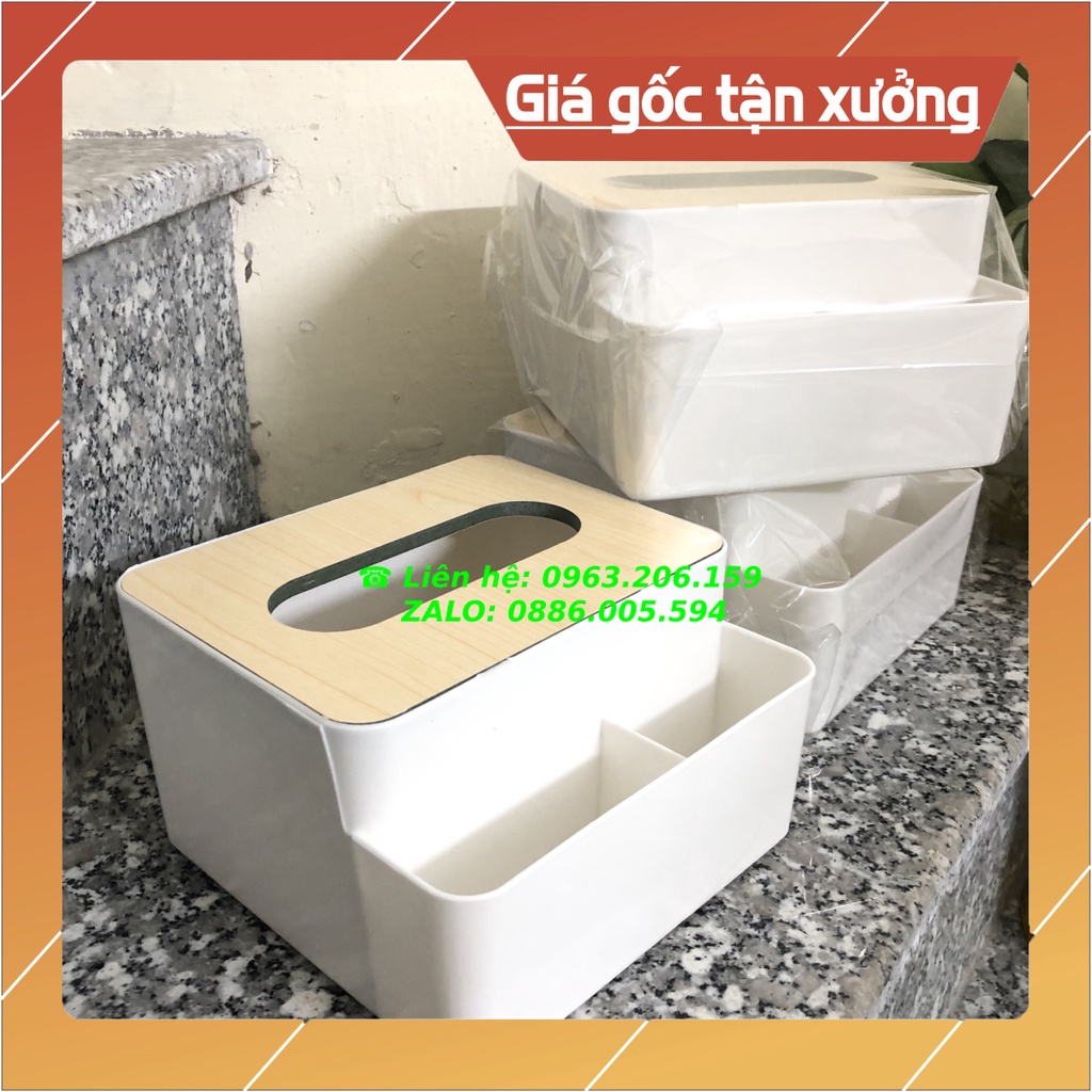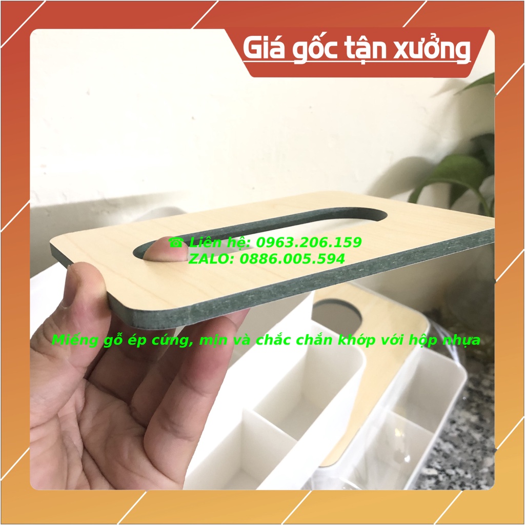 Nhà cửa & Đời sống > Sắp xếp nhà cửa > Hộp khăn giấy || [HOT] Hộp Nhựa Mặt Gỗ Ép Đựng Giấy Ăn Và 2 Ngăn Để ĐồCòn hàng
