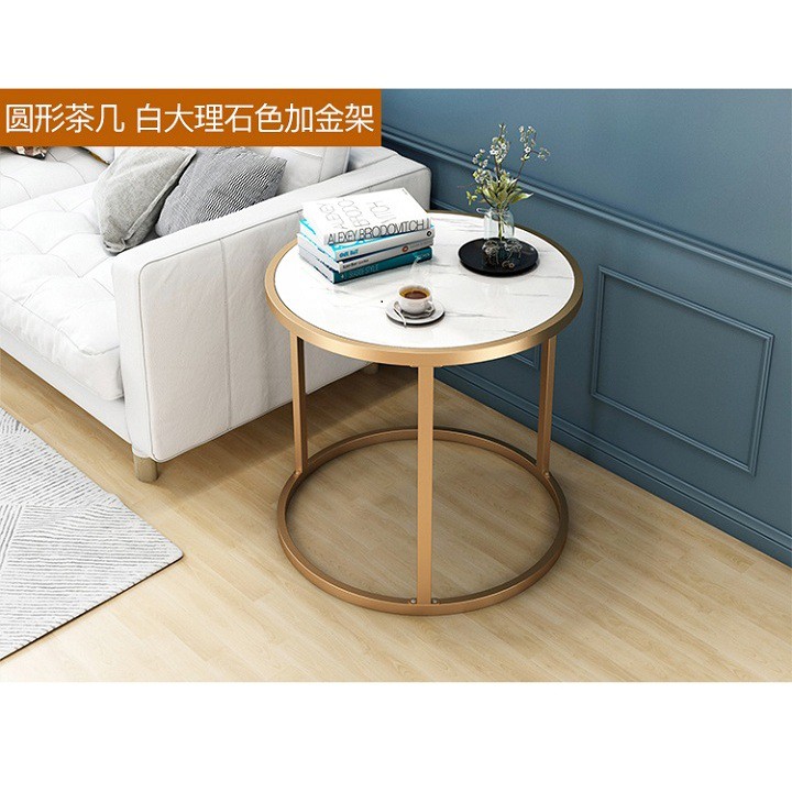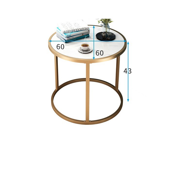 [HOT HOT] Bàn trà mặt tròn vân đá, chân sắt, 2 tầng, bàn cafe, bàn uống nước