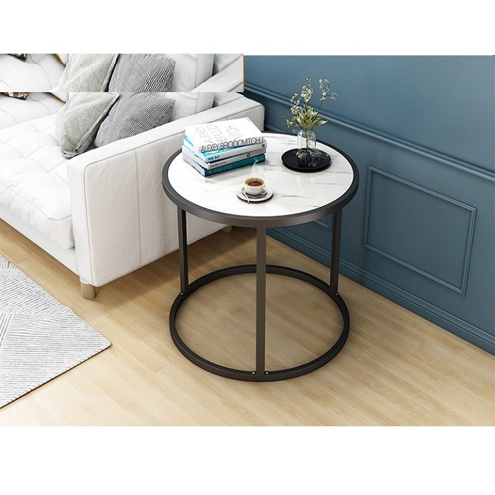 Nhà cửa & Đời sống > Nội thất > Bàn || [HOT HOT] Bàn trà mặt tròn vân đá, chân sắt, 2 tầng, bàn cafe, bàn uống nướcCòn hàng