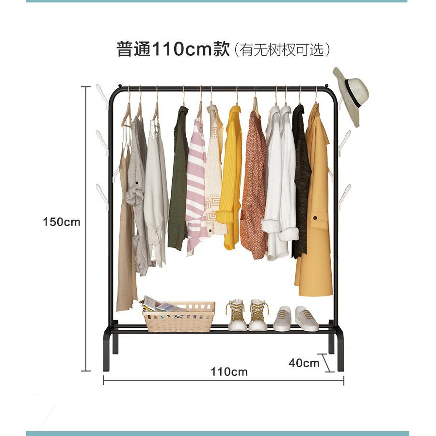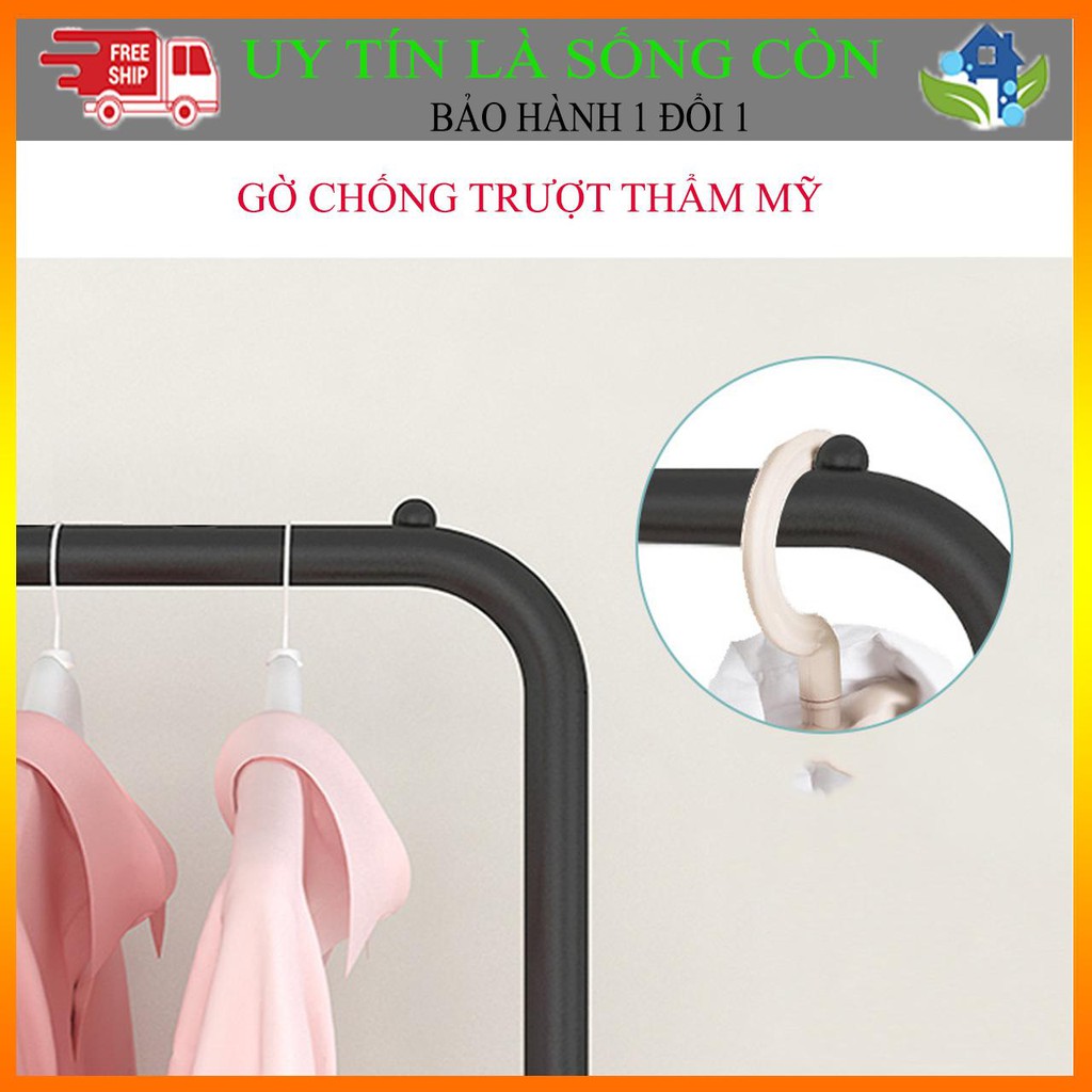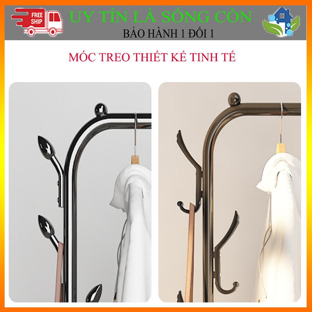 Gía treo quần áo thiết kế thêm 1 tầng có các thanh sắt ngang để đồ, ngoài việc treo quần áo còn có thể để được rất nhiều vật dụng lên tầng dưới của kệ áo như : Giày dép, túi sách, ba lô...