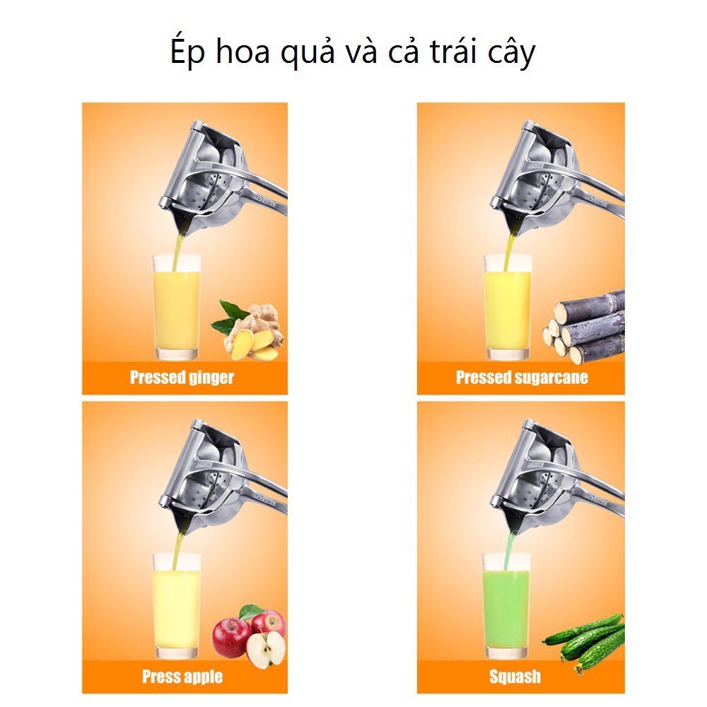Dụng cụ ép trái cây được làm từ hợp kim nhôm chất lượng cao mang lại tuổi thọ cao, chống rỉ sét. Dụng cụ ép chất lượng cao cấp đảm bảo rằng tay cầm không bị cong khi ép trái cây có múi lớn. Máy có thể ép được tất cả các loại hoa quả từ cứng đến mềm như: mía, ổi, dứa, lê, cam, chanh,...Sản phẩm rất thuận tiện để sử dụng và với một thao tác vắt dễ dàng, bạn có thể vắt từng chút nước khỏi trái cây. Máy ép trái cây bằng tay không tốn điện, giữ nguyên được chất dinh dưỡng của hoa quả. Máy ép trái cây này có thể tháo rời để làm sạch dễ dàng.
