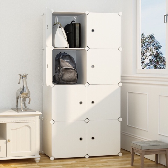 Tủ nhựa lắp ghép 8 ô- tủ quần áo lắp ghép. Tặng kèm 1 treo đồ.