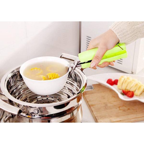 - Dụng cụ này giúp dễ dàng kẹp bát đĩa nóng ra khỏi lò vi sóng hay nồi hấp một cách dễ dàng và chắc chắn