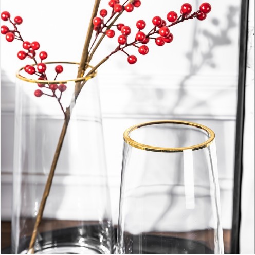 [HOT] Lọ hoa cao cấp trong suốt miệng vàng quý phái