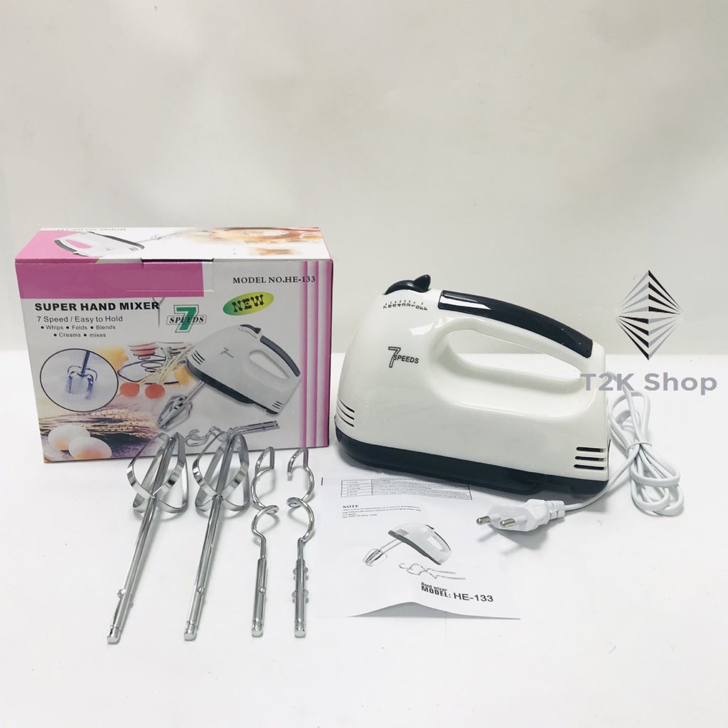 Máy Đánh Trứng Cầm Tay 7 Tốc Độ Công Suất 180WCuộc sống bận rộn, dành thời gian bên gia đình với các món ăn khoái khẩu góp phần làm ấm thêm tình cảm mọi người thân. Đối với người Việt Nam chúng ta những món trứng chiên, bánh Plan, bánh kem hay món bánh truyền thông làm từ bột luôn có mặt trong các bữa ăn, buổi tiệc sinh nhật, tiệc họp mặt. Công việc chuẩn bị nguyên liệu chế biến món ăn đó giờ đây vô cùng tiện dụng, dễ dàng và nhanh chóng với Máy Đánh Trứng 7 Tốc Độ, Thiết kế nhỏ gọn bạn không phải vất vả nhào bột, trộn trứng, rất tiết kiệm thời gian và điện năng.