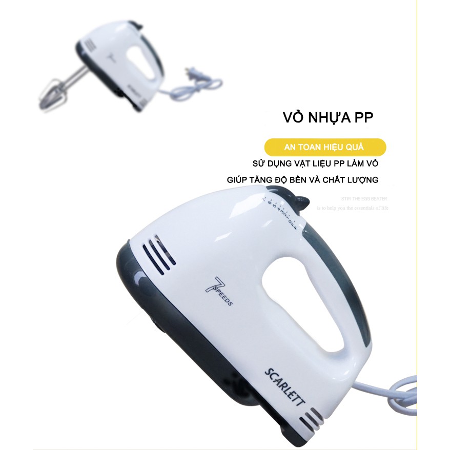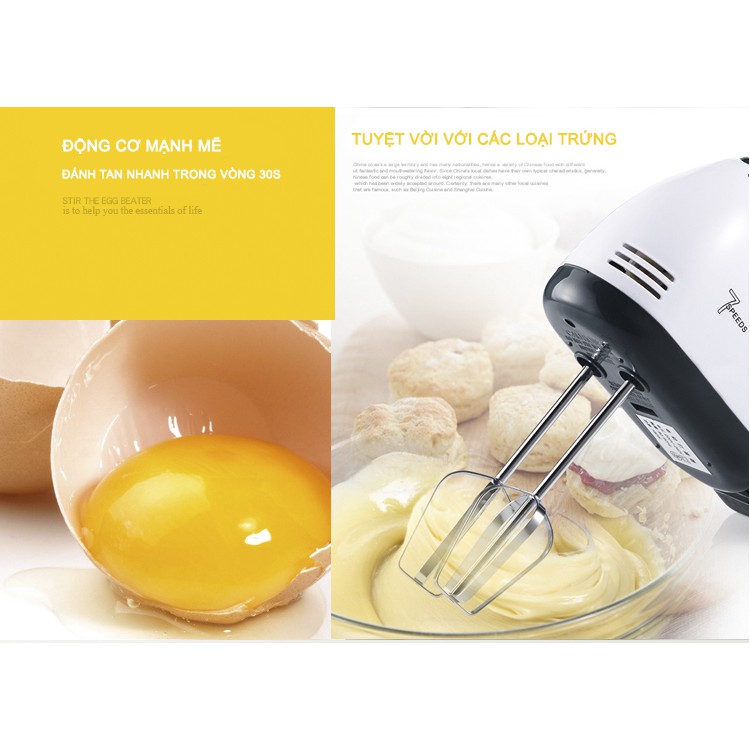 Máy Đánh Trứng Cầm Tay 7 Tốc Độ Công Suất 180WCuộc sống bận rộn, dành thời gian bên gia đình với các món ăn khoái khẩu góp phần làm ấm thêm tình cảm mọi người thân. Đối với người Việt Nam chúng ta những món trứng chiên, bánh Plan, bánh kem hay món bánh truyền thông làm từ bột luôn có mặt trong các bữa ăn, buổi tiệc sinh nhật, tiệc họp mặt. Công việc chuẩn bị nguyên liệu chế biến món ăn đó giờ đây vô cùng tiện dụng, dễ dàng và nhanh chóng với Máy Đánh Trứng 7 Tốc Độ, Thiết kế nhỏ gọn bạn không phải vất vả nhào bột, trộn trứng, rất tiết kiệm thời gian và điện năng.