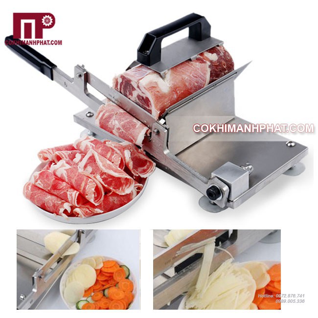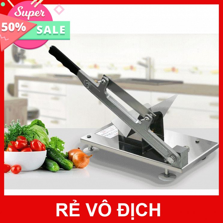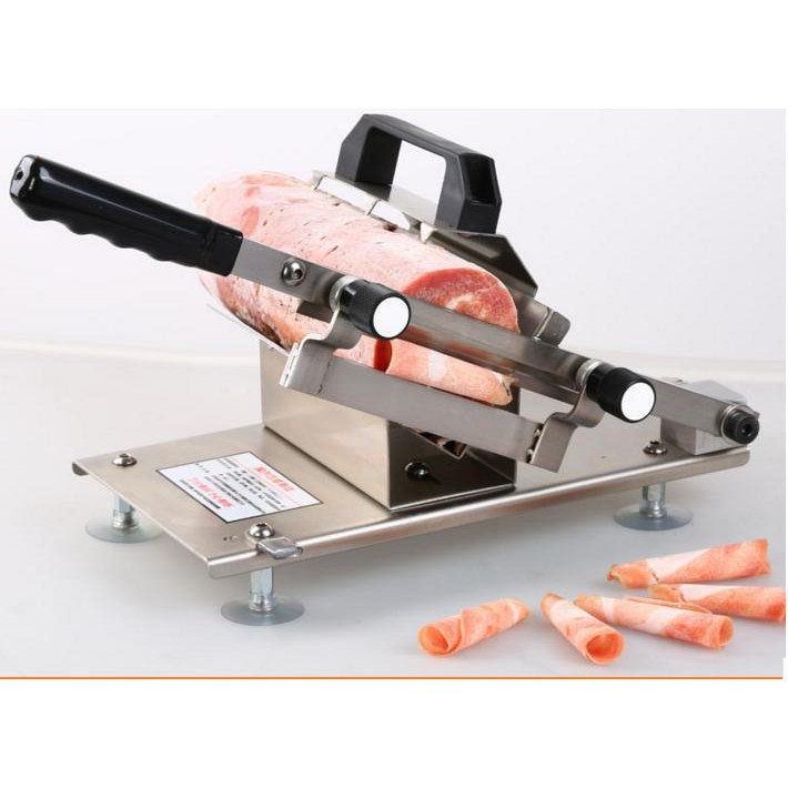 [Gia Dụng Giá Rẻ]Máy cắt thịt bằng tay được chế tạo bằng vật liệu inox cao cấp 304. Máy chuyên dùng thái thịt bò, thịt lợn, thịt cừu, thịt dê, thịt bê, thịt trâu... đông đá.Ngoài ra máy còn thái được củ quả như khoai tây, cà rốt, dưa chuột, thịt hun khói, giò chả....Với kiểu dáng nhỏ gọn, chất liệu 100% inox cao cấp, nhìn máy rất bắt mắt và thẩm mỹ cho các đầu bếp sử dụng. Điểm quan trọng nhất là lát cắt thịt rất sắc ngọt như các máy thái bằng điện, nhưng chuẩn mực và tinh tế hơn khi có bàn tay thái của người chế biến.