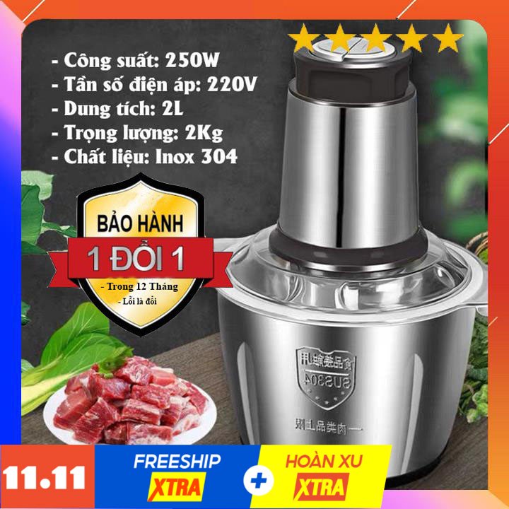 [HOT]Máy Xay Thịt Đa Năng Cối 2L Inox 304,4 Lưỡi Dao Thép Không Gỉ,Say Sinh Tố Thịt, Cá, Rau Củ Hoa Quả (CHẤT LƯỢNG CAO)