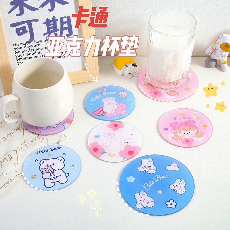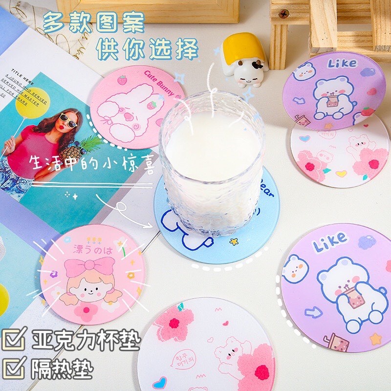 [HOT] Miếng Lót Ly Trong Suốt In Hình Hoạt Hình Dễ Thương