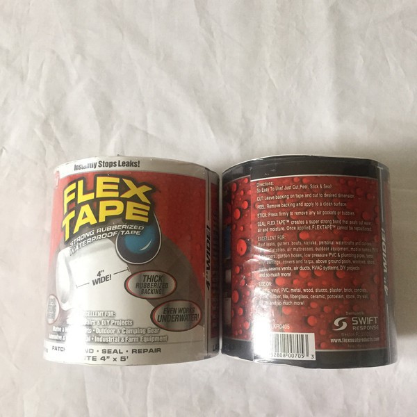 [Gia Dụng Giá Rẻ]Flex Tape chống nước tuyệt đối ngay cả ở mặt dính nên bạn không cần cách ly đồ vật hay hệ thống nước với nước trước khi tiến hành dán Flex Tape mà có thể thực hiện ngay cả khi nước đang chảy xối xả. Flex Tape, dính, ăn ngay.Được tạo nên từ các thành phần: Vải sợi Cacbon chịu nhiệt, chất keo được pha chế từ các phụ gia đặt biệt, miếng vá thông minh FlexTape có thể dãn được trên mọi bề mặt, ngay cả trong môi trường nước.