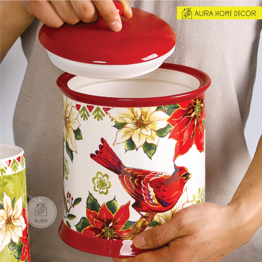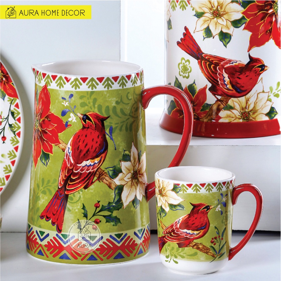 Giới thiệu HOT NOEL Bình nước kiêm bình hoa, Hũ đựng đồ họa tiết chim sơn ca đỏ và hoa trạng nguyên