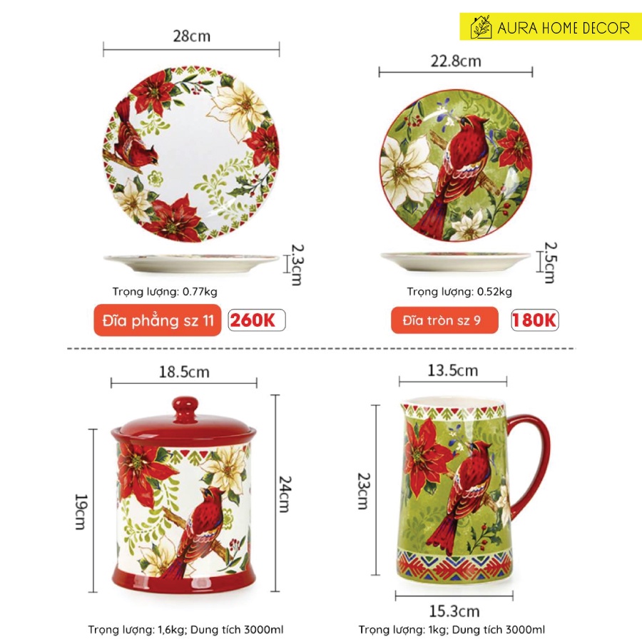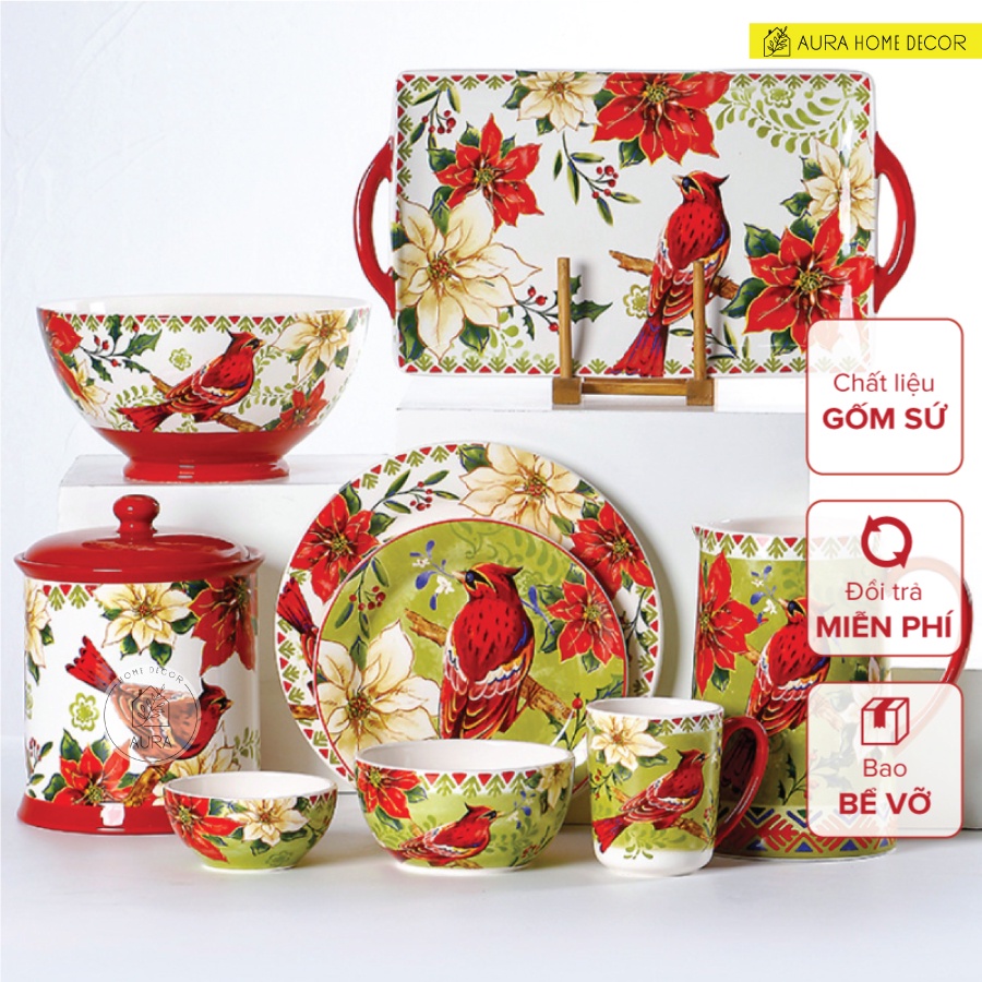 [Hàng mới 👉 Bộ bát đĩa gốm mỹ nghệ #chim_sơn_ca_đỏ_Mỹ trong bữa tiệc giáng_sinh đầy màu sắc, hàng vẽ tay xuất Âu Mĩ cực phẩm của hãng OMK]Bộ bát với hình tượng chủ đạo là chim đỏ Mỹ cùng hoa Poinsettia (Hoa Trạng Nguyên) đặt 1 mình hay đặt cùng món ăn đều tạo nên vẻ rực rỡ, ấm áp, hạnh phúc và sang trọng của những bữa tiệc giáng sinh tại nhà.