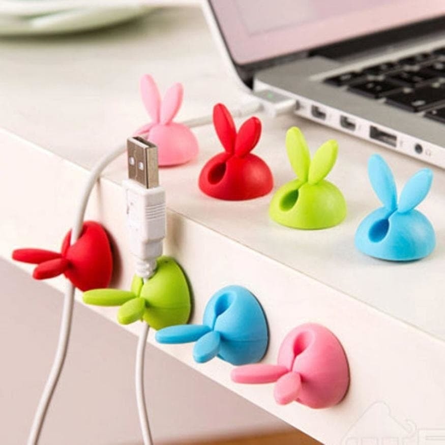 Giữ bàn làm việc của bạn gọn gàng với nút giữ dây điện tai thỏ, không còn rối rắm với mớ cap sạc, cáp máy in sau khi rút ra. Nút giữ dây điện tai thỏ với thiết kế đáng yêu vừa là vật trang trí đẹp mắt cho bàn làm việc, vừa là vật dụng siêu tiện ích trong cuộc sống công sở hàng ngày