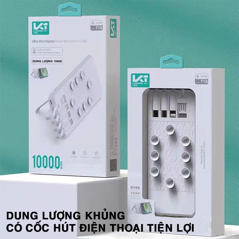 Điện Thoại & Phụ Kiện > Phụ kiện > Sạc dự phòng & Pin > Sạc dự phòng || [ HOT] Sạc dự phòng Cát Thái T-18 có cốc hút, giá đỡ tiện lợi công suất 10000 mAh, sạc nhanh, không sinh nhiệt an toànCòn hàng