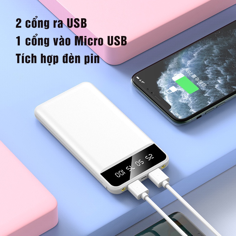 - Sạc dự phòng 10.000mAh nhỏ gọn thời trang P398 sạc 2 thiết bị cùng lúc.