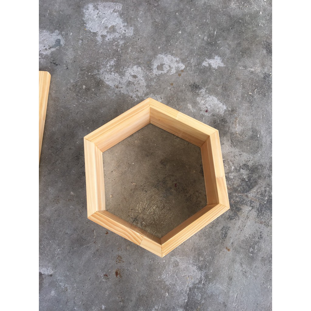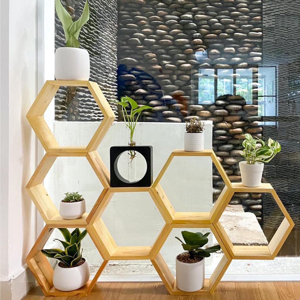 - Gồm 6 kệ gỗ treo tường lục giác (mộc)