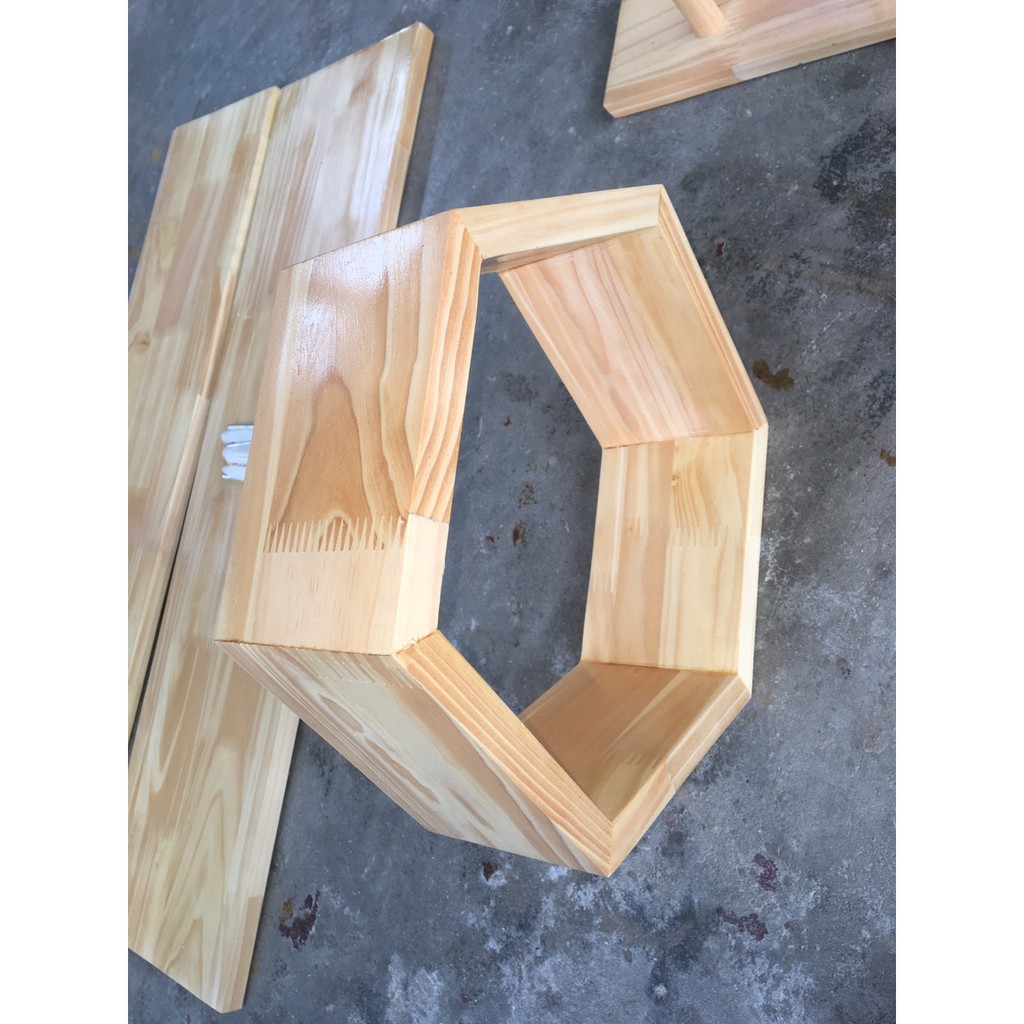 Nhà cửa & Đời sống > Nội thất > Kệ & Giá || (hot sale) Bộ 6 kệ gỗ treo tường hình lục giác + 3 thanh ngang 40cm kết hợp gỗ thông kệ đựng đồCòn hàng