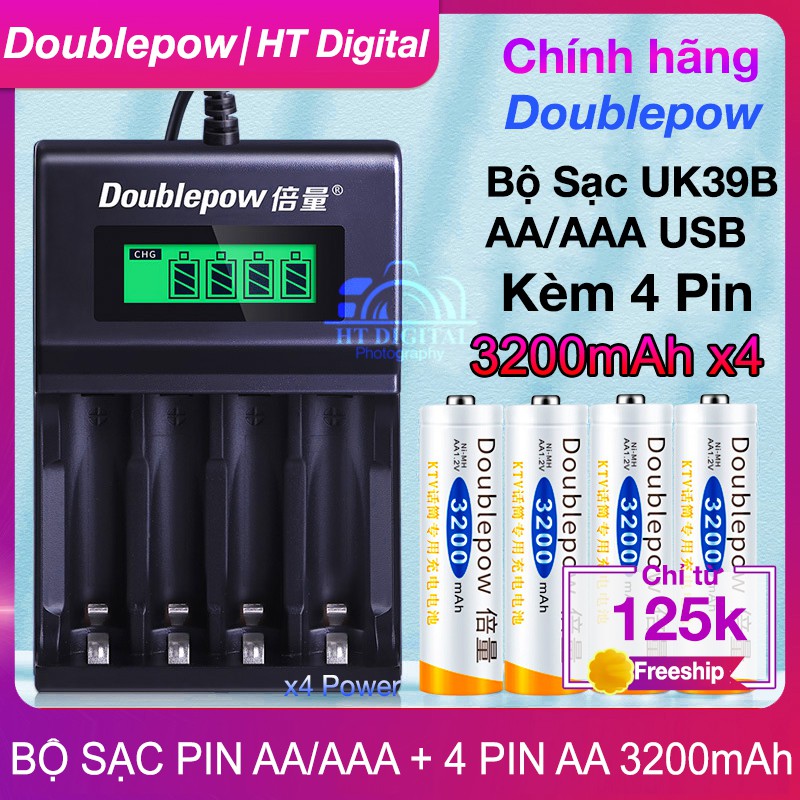 Cameras & Flycam > Phụ kiện máy ảnh > Bộ sạc pin || [Hot Sale] Bộ Pin Sạc AA AAA 3200mAh Doublepow UK93 Tự Ngắt - Pin Dung Lượng Cao Cho Micro Karaoke, thiết bị điện tửCòn hàng
