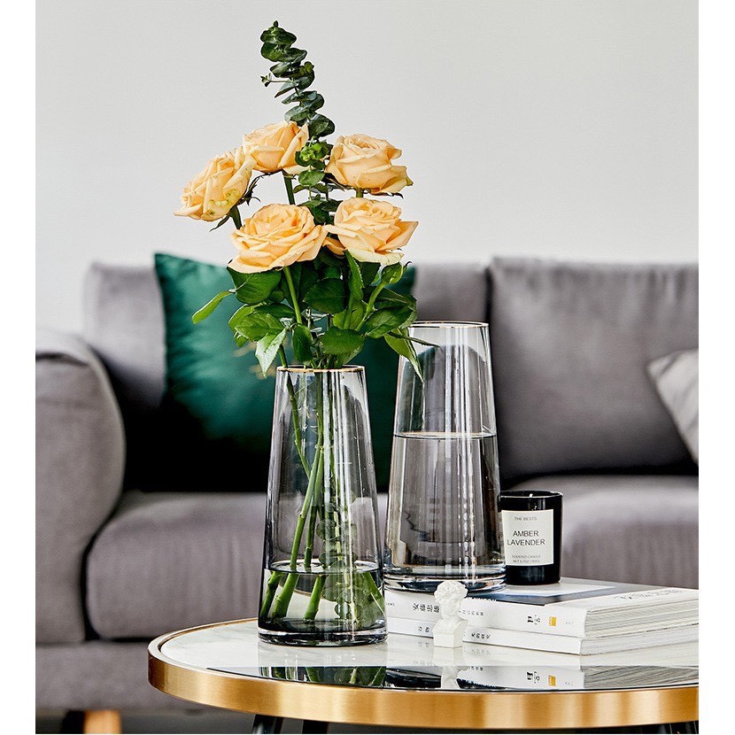 [HOT-SẴN] Bình Hoa Thủy Tinh Viền Vàng Phong Cách Châu Âu.
