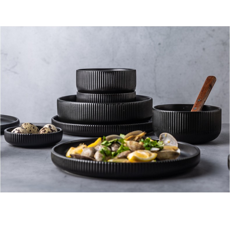 Nhà cửa & Đời sống > Bộ đồ bàn ăn > Tô || (HOT) Tô canh sứ màu đen sọc men mờ Cruise sang trọng - Bát tô sứ cao cấp phong cách Bắc ÂuCòn hàng