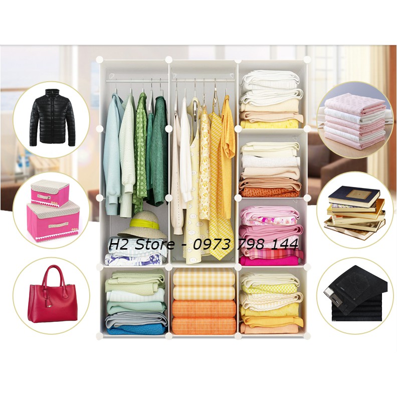 - Có thể móc, xếp quần áo hoặc để sách vở thoải mái, mỗi ô có thể chiu lực từ 12-15kg