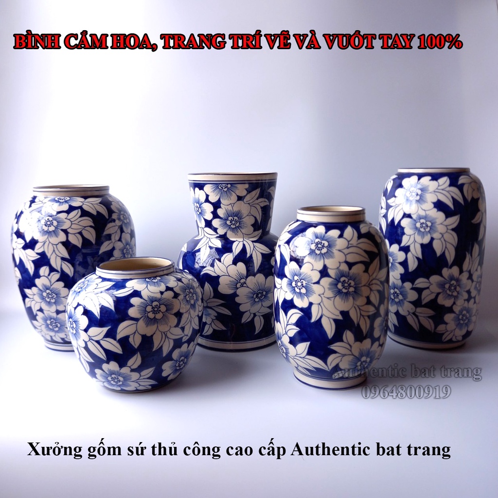 (HOT TREND) Bình cắm hoa, trang trí vẽ và vuốt tay thủ công 100% - Gốm sứ bát tràng chính hãng - authentic bat trang
