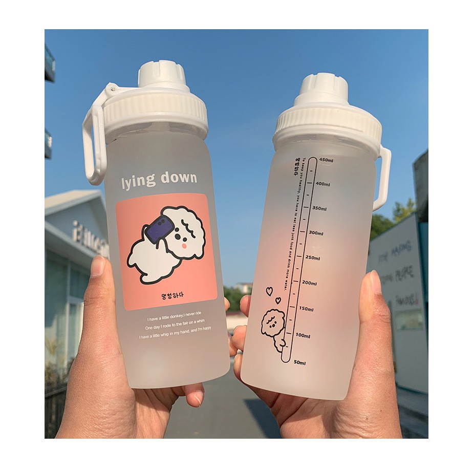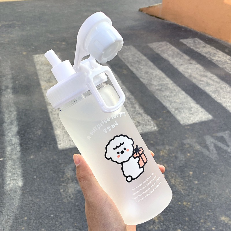 Nhà cửa & Đời sống > Bộ đồ bàn ăn > Bình nước & phụ kiện || [Hot trend] Bình thủy tinh mặt nhám in hình chú chó trăng có vạch đo và ống hút 500ml siêu kuteCòn hàng