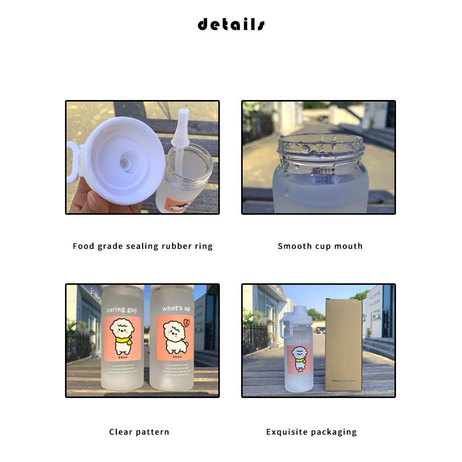 [Hot trend] Bình thủy tinh mặt nhám in hình chú chó trăng có vạch đo và ống hút 500ml siêu kute