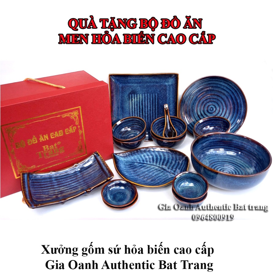Xưởng gốm sứ cao cấp Gia Oanh Authentic bat trang - 168 Giang Cao, Bát Trang, Gia Lâm, Hanoi, chuyên cung cấp dòng men hỏa biến - men cao cấp nung ở nhiệt độ rất cao 1300 độC Qua 2 lần lửa đảm bảo an toàn, cam kết không chì không kim loại nặng, Rất an toàn trong lò vi sóng, máy rửa chén bát. Các sản phẩm này được các nhà hàng, khách sạn khắp cả nước chọn dùngHôm nay chúng tôi xin giới thiệu với cả nhà bộ BỘ ĐỒ ĂN hỏa biến CAO CẤP đang HOT nhất hiện nay .Đây là sản phẩm chuyên được dùng cho nhà hàng, khách sạn cao cấp 5 sao