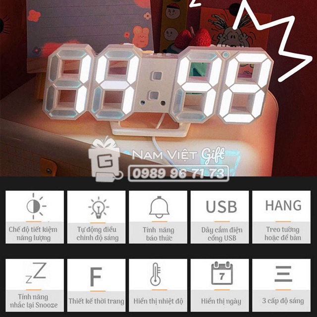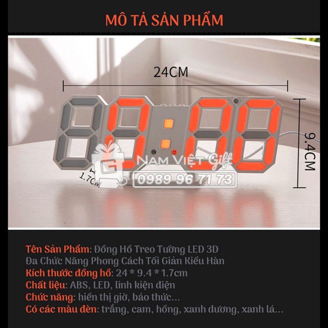 Nhà cửa & Đời sống > Trang trí nhà cửa > Đồng hồ || [Hot Trend HQ] Đồng Hồ Treo Tường LED 3D Đa Chức Năng Phong Cách Tối Giản Kiểu HànCòn hàng