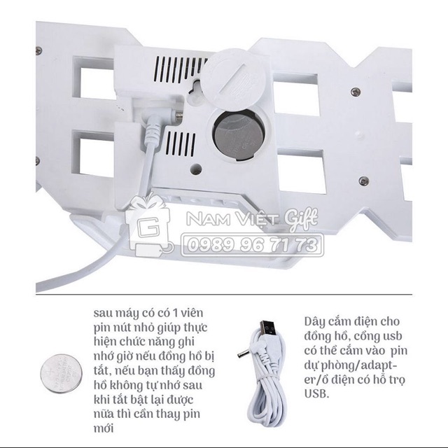🔹 Đồng hồ dùng nguồn USB (có dây cáp kèm theo, không kèm adapter).