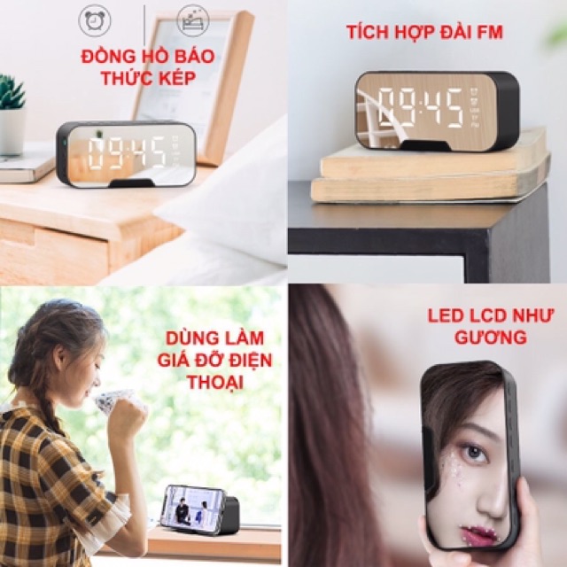 + Âm thanh từ loa to rõ, chắc âm, bass lớn. Khi sở hữu sản phẩm này vừa có một chiếc loa nhỏ gọn, một chiếc đồng hồ hiển thị thời gian, nhiệt độ và cả một chiếc gương để trang điểm.