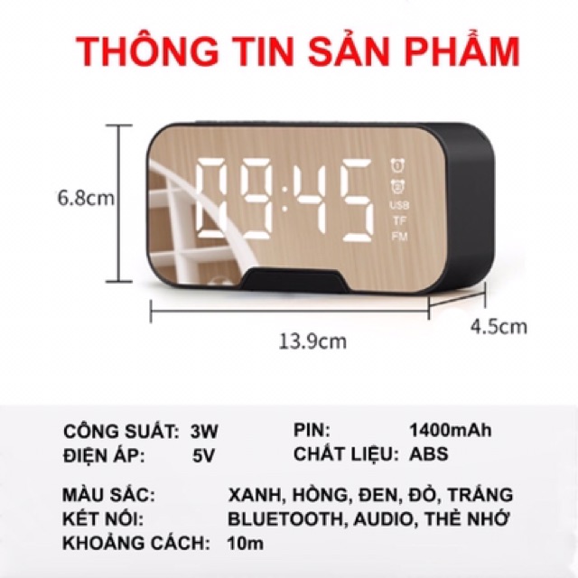 🔥 Tên sản phẩm : Đồng Hồ Loa G10 Mặt Gương Hiển Thị Đèn Led ( Loa Bluetooth )