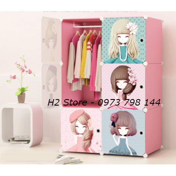 Giới thiệu [HOT] TỦ NHỰA LẮP GHÉP 6 Ô CỬA CÔ GÁI CUTE CHO BÉ ĐỂ ĐỒ ĐA NĂNG THÔNG MINH sâu 47cm