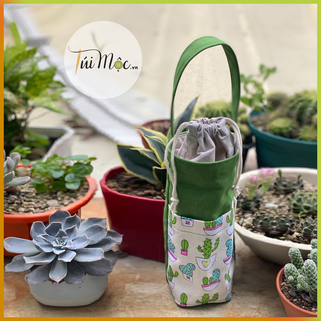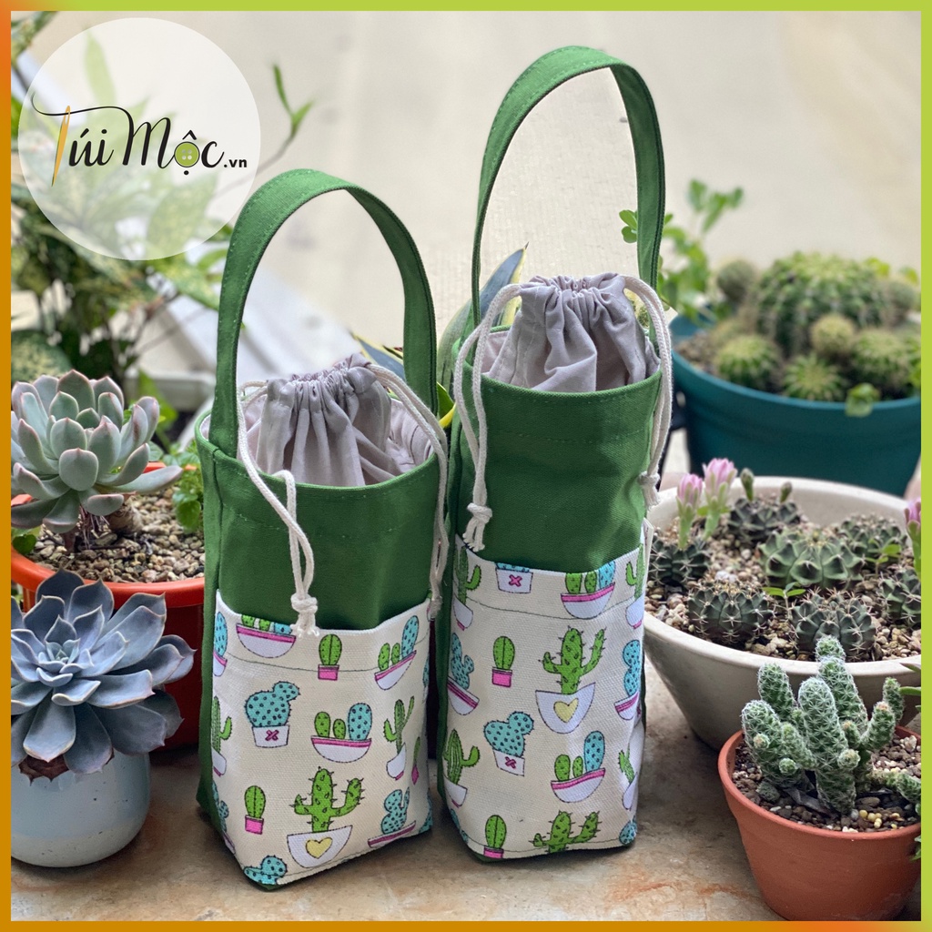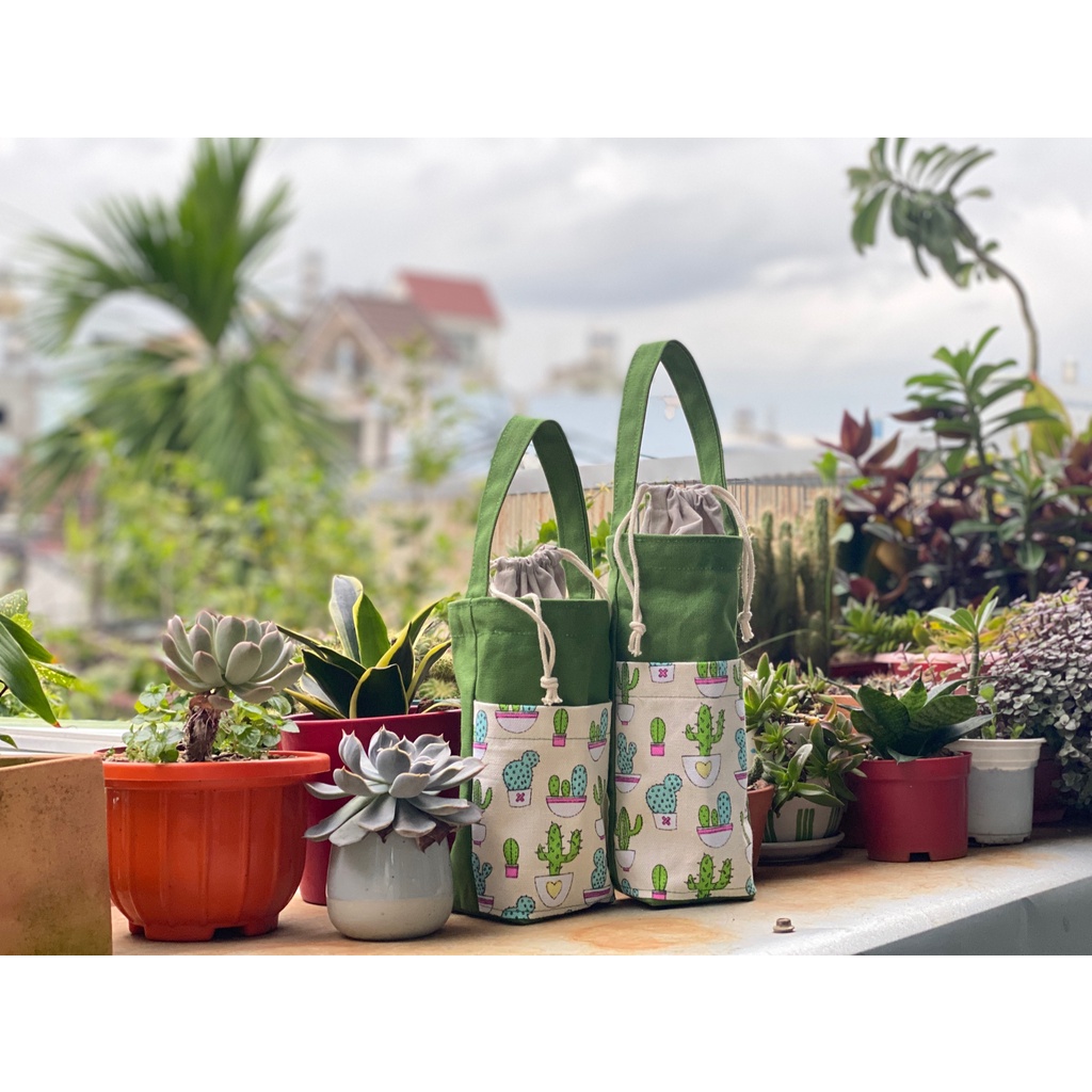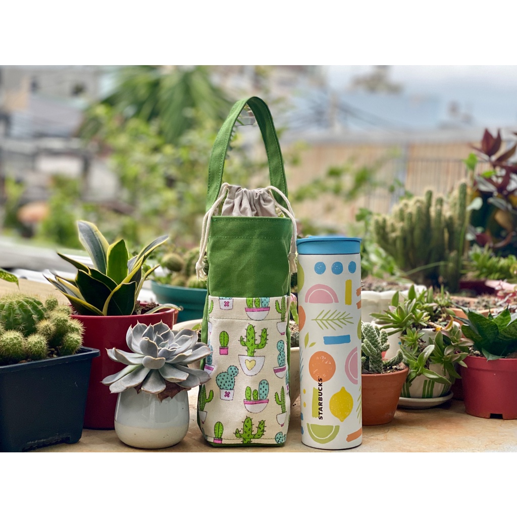 (HOT) Túi vải Xanh Xương Rồng đựng bình ly giữ nhiệt MỚI!!!