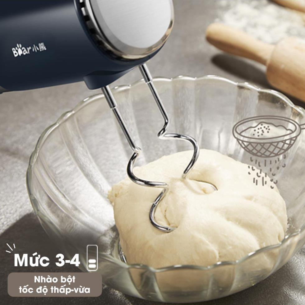 ✔ Với chức năng trộn bột, máy đánh trứng cầm tay Bear có khả năng trộn từ 150-300 gram bột, giúp bạn dễ dàng nhào bột mà không mất sức. Chưa kể, đôi lúc nhồi bột bằng tay, thành phẩm bột sẽ khó đạt chuẩn và bánh sau khi nướng sẽ bị bết, không mềm xốp hay xé được thớ bánh.