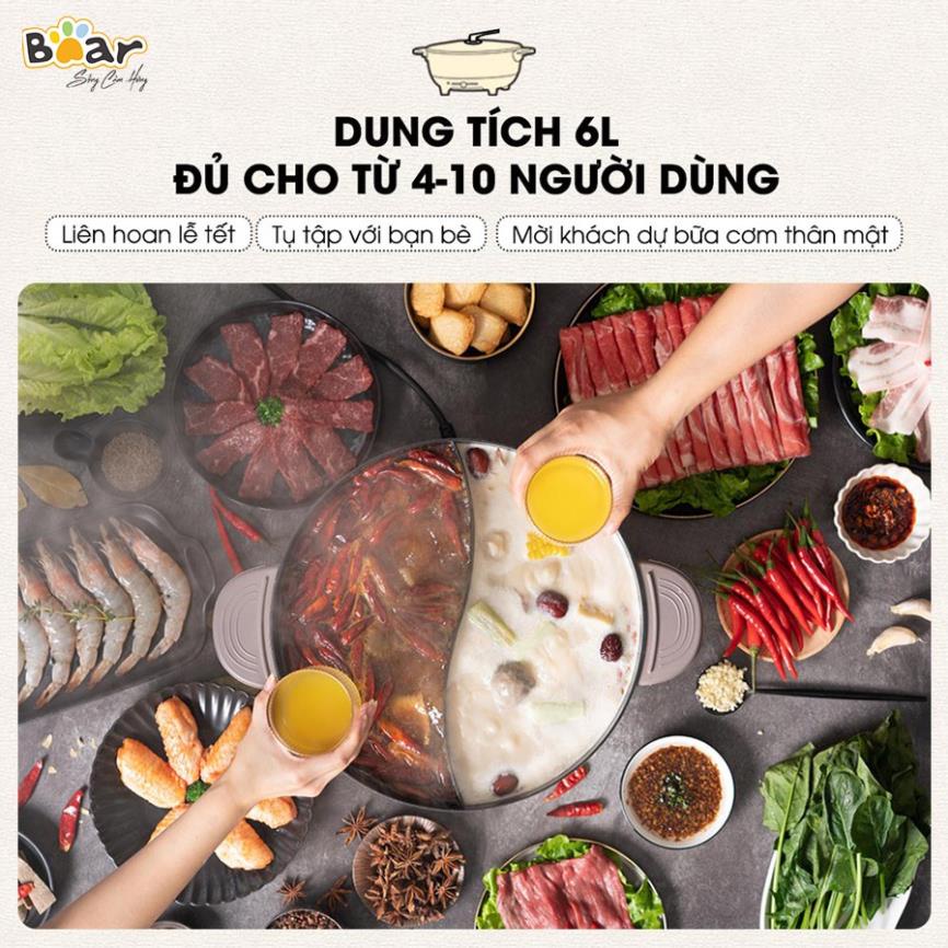 [HOT - XẢ KHO] Nồi lẩu uyên ương Bear DHG-B60R6 6L - BẢN QUỐC TẾ - Nấu lẩu 2 ngăn tiện dụng - Bảo hành 12 tháng