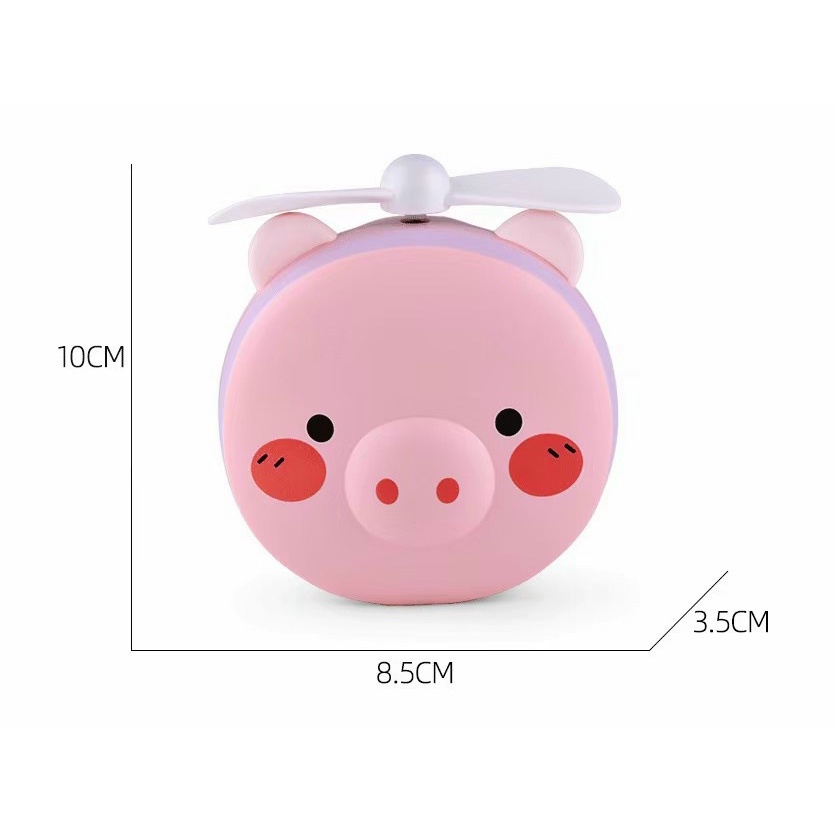 (HOT)Quạt mini hình con heo kèm gương có đèn LED có kèm sạc tích điện